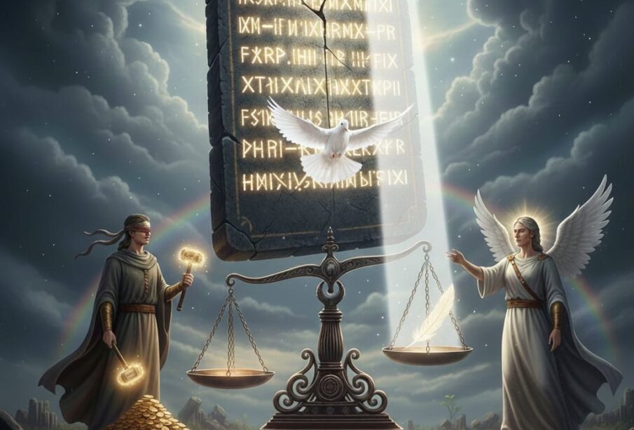 O culpado é alcançado pela mesma régua, independentemente de seu grau de adiantamento interior. A Justiça Divina, porém, opera em outra escala. Suas leis não se detêm no fato, mas na consciência que o produz. A pena — que é antes um processo de depuração do que um castigo — corresponde ao nível de evolução do espírito que a experimenta.
