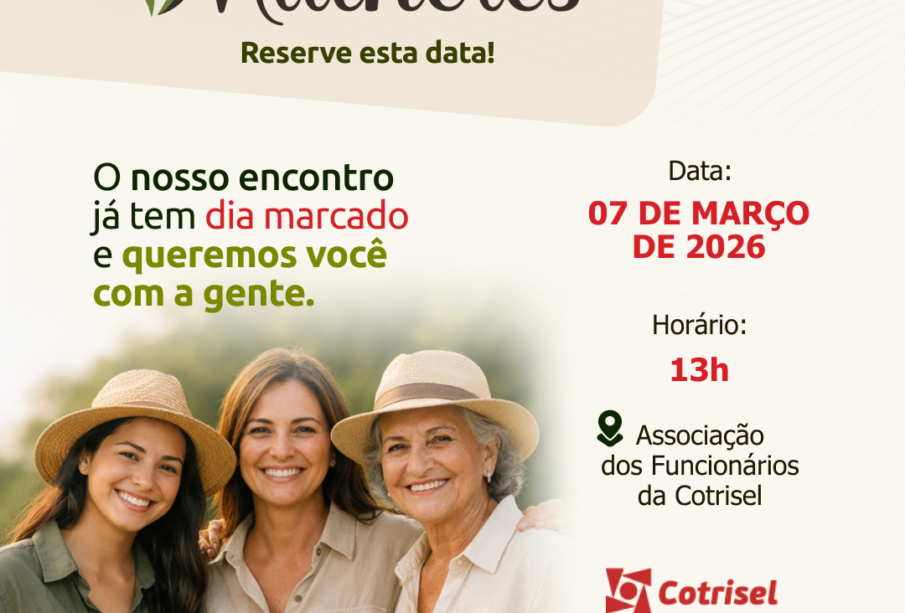 O encontro será realizado no dia 07 de março de 2026, às 13h, na Associação dos Funcionários da Cotrisel, reunindo associadas, esposas e filhas de associados para uma tarde dedicada à inspiração, ao diálogo e ao fortalecimento de laços.