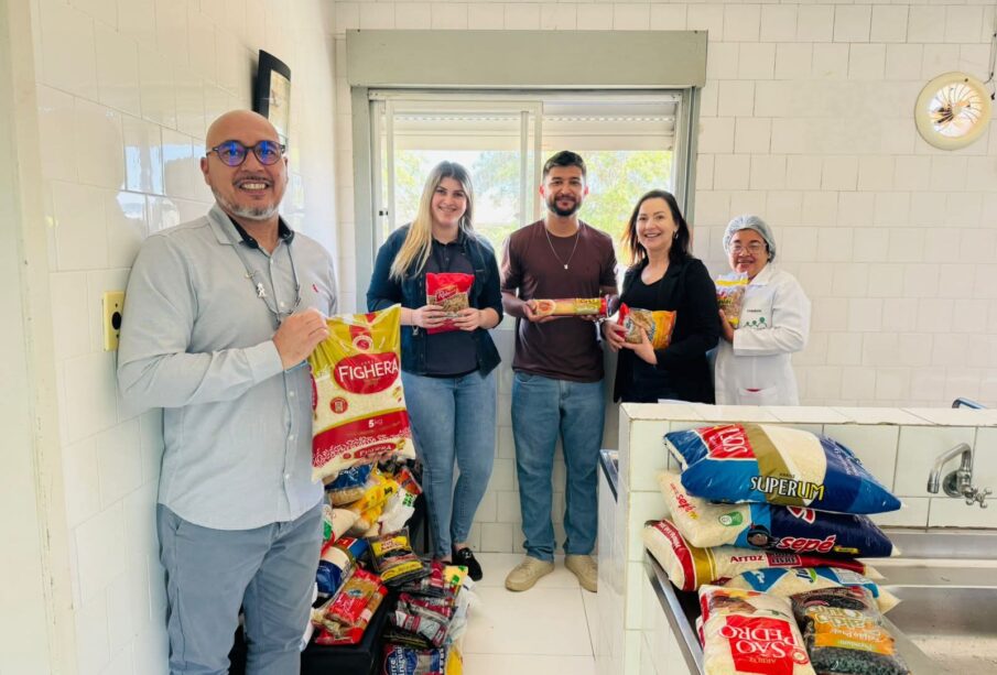 A doação foi recebida pelo Secretário de Saúde, Gustavo Machado, e pela Diretora do Hospital, Jaine Bortoluzzi, das mãos do Coordenador de Esportes, Matheus Stromm, e da Secretária de Educação, Ana Paula Posser.