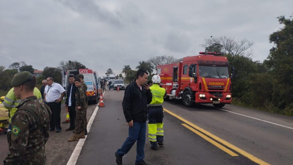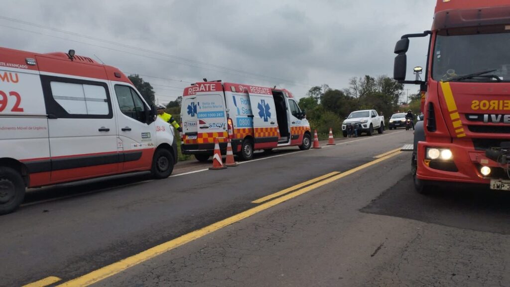 Equipes da Rota de Santa Maria, da Polícia Rodoviária Estadual e do Corpo de Bombeiros de Restinga Sêca atuam no atendimento da ocorrência. O trânsito no trecho segue liberado, sem bloqueios.