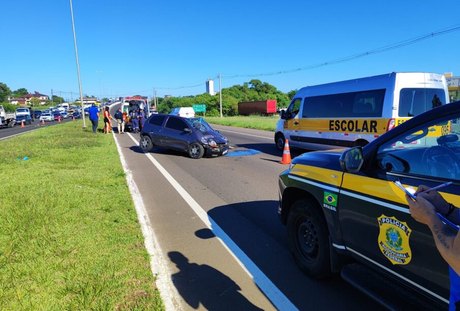 A PRF atendeu um acidente de trânsito do tipo colisão lateral de mesmo sentido, na BR 158, Km 329, em Santa Maria.