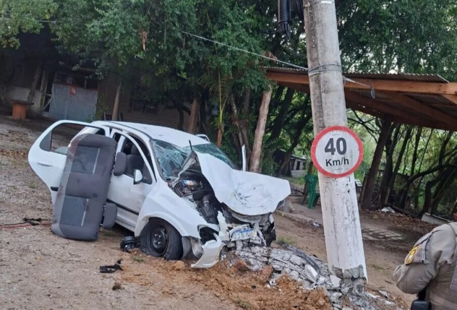 De acordo com as informações apuradas no local, um veículo Chevrolet Celta colidiu violentamente contra um poste. A força do impacto deixou a parte frontal do automóvel completamente destruída, exigindo a atuação do Corpo de Bombeiros para o resgate das vítimas presas às ferragens, com apoio do Serviço de Atendimento Móvel de Urgência (SAMU).