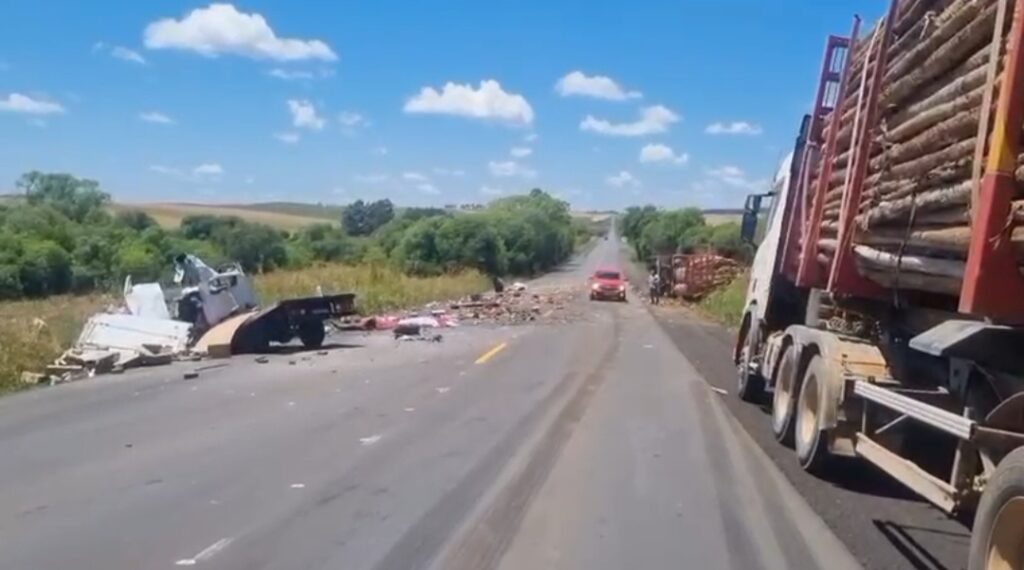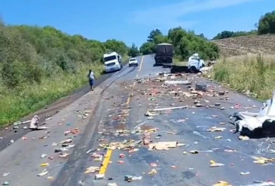 Um caminhão Scania com placas de Belo Horizonte/MG e uma caminhonete Hyundai/HR HDB com placas de Porto Alegre/RS colidiram.