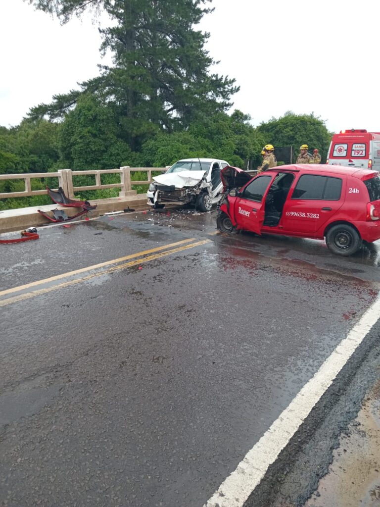 Na tarde chuvosa deste domingo, 16 de novembro, um acidente ocorrido na localidade de Passo do Verde, na divisa entre Santa Maria e São Sepé, deixou cinco pessoas feridas. A colisão aconteceu sobre a ponte do Rio Vacacaí e envolveu dois carros. Um VW Voyage, com placas de Dom Pedrito e um Renault Clio de Florianópolis. Os ocupantes do Voyage.
