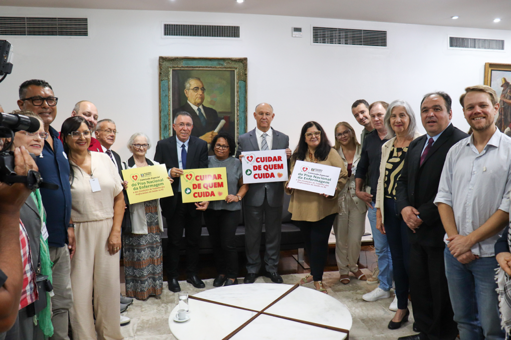 Em cerimônia realizada no gabinete da Presidência do Legislativo estadual, e que contou com a participação de diversas entidades e instituições representativas da categoria da enfermagem gaúcha, foi instalada nesta terça-feira, 1, a Comissão Especial que irá tratar da efetivação do piso nacional da categoria e sobre as condições de trabalho enfrentadas pelos profissionais da saúde do RS. O deputado Valdeci, que protocolou a proposta de criação do colegiado, vai coordenar os trabalhos do grupo nos próximos quatro meses.  “É fundamental que possamos criar condições permanentes para que aqueles que cuidam da população também tenham cuidado. E o papel da Assembleia e de nós parlamentares é fazer com que esse tema não apenas seja debatido, mas produzir e recolher o máximo de elementos necessários para encaminhar a todas as autoridades, sejam municipais, estaduais e a própria União, e quem sabe até mesmo algum tipo de legislação, sugestões e encaminhamentos estabelecendo que lei é lei e que o piso precisa ser cumprido”, afirmou o deputado Valdeci Oliveira, que protocolou