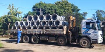Secretaria de Infraestrutura recebe tubos de concreto para obras de bueiros