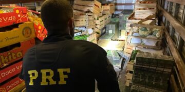 PRF prende dois homens com carga de cigarros contrabandeados em caminhão de frutas