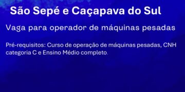 7 de agosto de 20252390*VAGA DE TRABALHO EM SÃO SEPÉ E CAÇAPAVA DO SUL* – Operador de máquinas pesadas Pré-requisitos: Curso de operação ... -