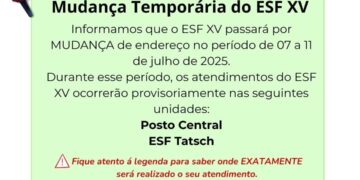 Mudança Provisória no local de Alatendimento na unidade ESF XV de Novembro em São Sepé