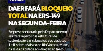 DAER comunica bloqueio total da ERS-149 em Restinga Sêca na segunda-feira