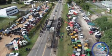 As imagens da mobilização dos produtores, comércio e autoridades de São Sepé na BR 392