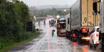 Trânsito bloqueado no desvio da Ponte sobre a Várzea do Toropi, BR-287/RS