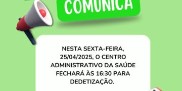 24 de abril de 20251470A Secretaria Municipal de Saúde comunica à população que, por motivos operacionais, haverá mudanças pontuais no atendimento de alguns setores ... -