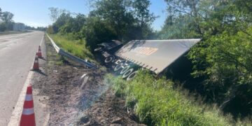 Caminhão tomba próximo a Base Aérea de Santa Maria