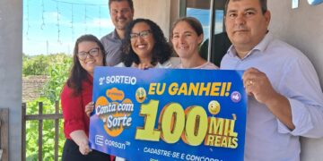 Ganhadora dos R$ 100 mil da campanha “Conta com a Sorte, Corsan” recebe cheque simbólico