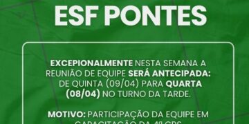 7 de abril de 20261500A secretaria de Saúde informa que, de forma excepcional nesta semana, haverá alteração no cronograma de funcionamento da ESF Pontes. ... -