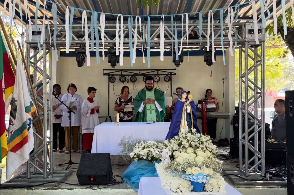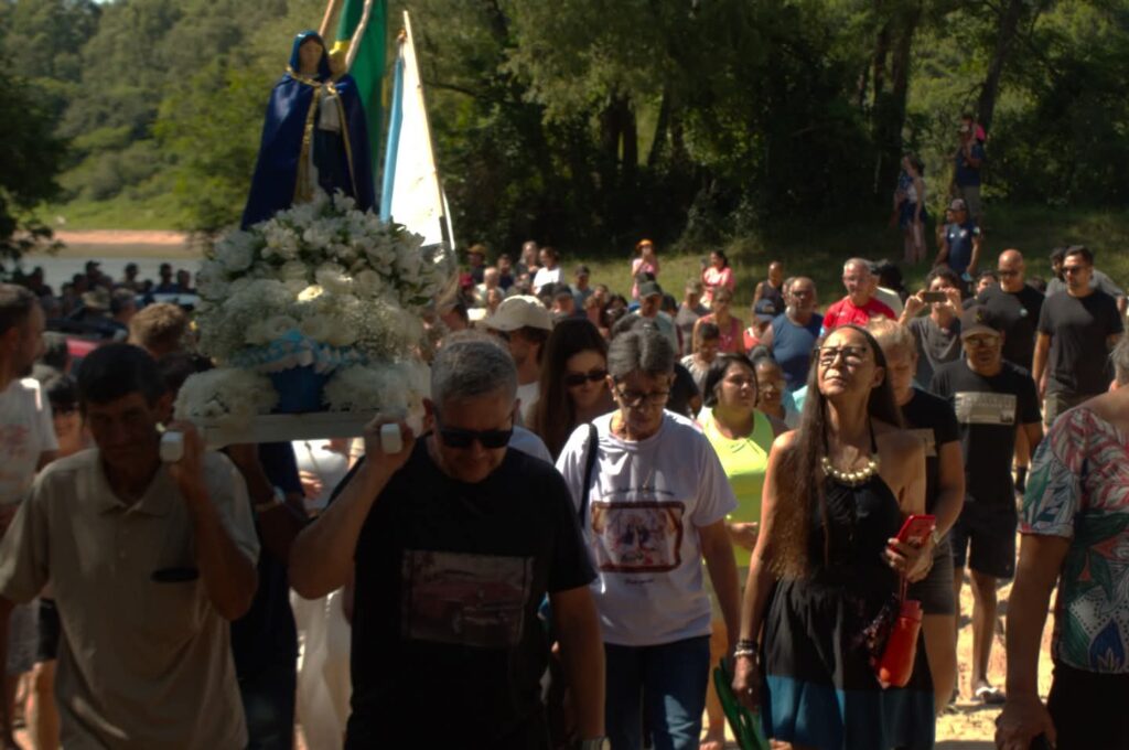 A programação teve início com a procissão fluvial pelas águas do Rio Vacacaí, com barcos ornamentados conduzindo a imagem de Nossa Senhora dos Navegantes, em um gesto coletivo de gratidão, proteção e esperança. Na sequência, ocorreu a procissão terrestre pelas ruas do Balneário, fortalecendo a expressão pública da fé e da devoção popular.