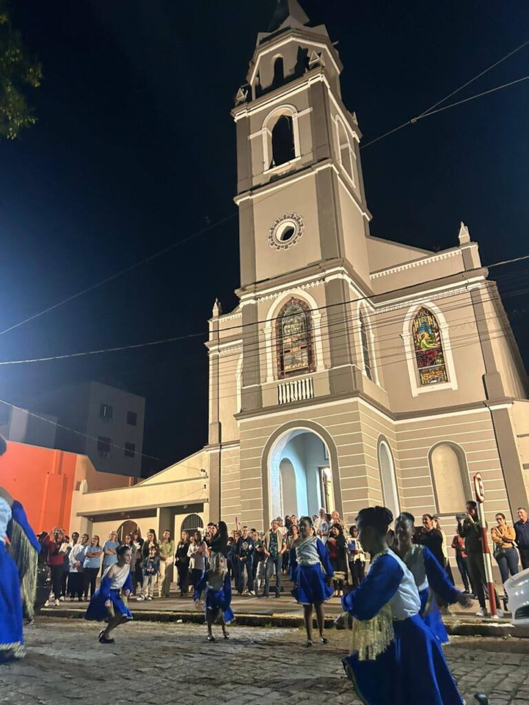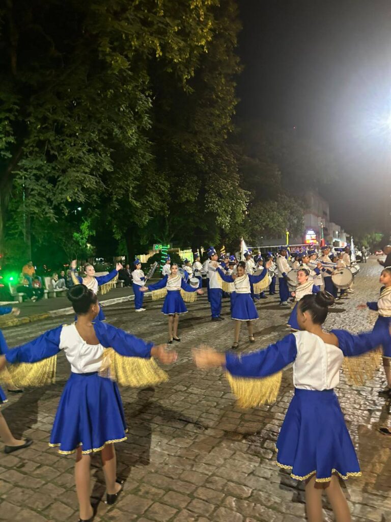O grupo realizou um trajeto que iniciou em frente à Prefeitura e seguiu até a Igreja Nossa Senhora das Mercês, chamando a atenção da comunidade ao longo do percurso. A apresentação evidenciou o trabalho desenvolvido ao longo dos últimos meses, envolvendo organização, ensaios e o empenho conjunto de alunos, professores e equipe técnica.