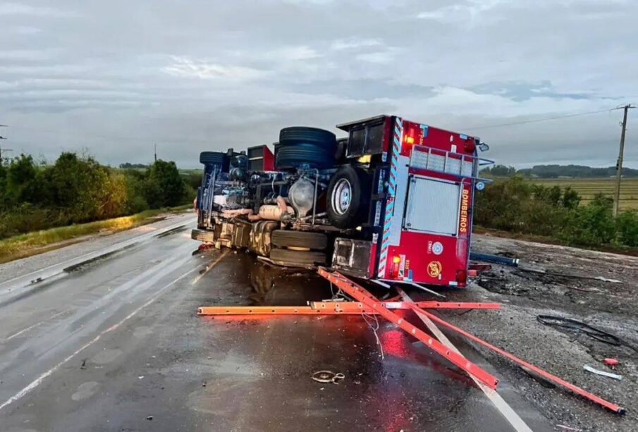 Três bombeiros ficaram feridos após capotamento do caminhão da guarnição de Rosário do Sul, neste sábado (20). O veículo havia saído para atendimento na direção de São Gabriel, BR 290. Conforme o comandante do Pelotão, Tenente Raul Stürmer, todos estão conscientes e bem. Um deles foi transferido ainda neste sábado para Santa Maria.