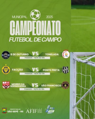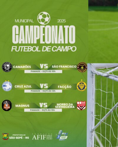 Três partidas vão movimentar o campeonato Municipal de Futebol de Campo em São Sepé. Confira a rodada:Final de semana promete movimentar o Jockey Club Sepeense
