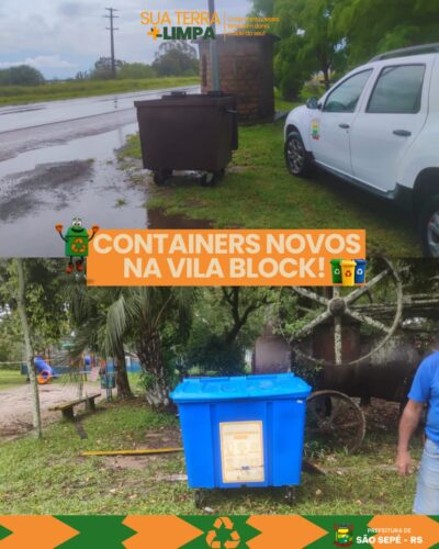 A Secretaria Municipal de Saúde de São Sepé informa o cronograma de atendimento da farmácia nos postos de saúde do ...Sustentabilidade na Vila Block: containers de lixo são instalados pela Prefeitura