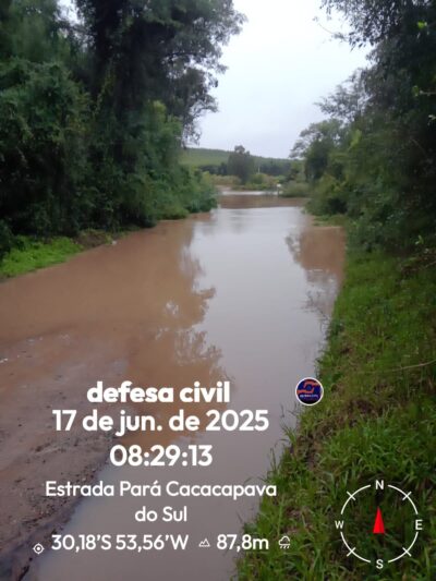 A Defesa Civil de São Sepé divulgou nesta terça-feira (17) uma atualização sobre os impactos das fortes chuvas que atingem ...Cheia do rio Vacacaí interrompe trânsito no interior de São Gabriel