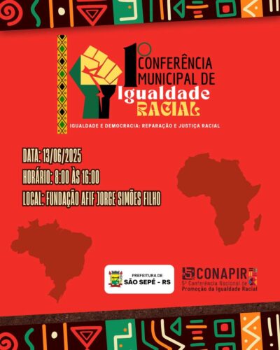 No dia 13 de junho de 2025, acontece a 1ª Conferência Municipal de Igualdade Racial de São Sepé, com o ...Atleta de São Sepé estará no Campeonato Brasileiro de Pádel em Santa Catarina