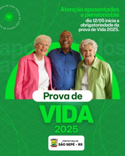 A Prefeitura de São Sepé informa que a Prova de Vida 2025 para aposentados e pensionistas do município será realizada ...