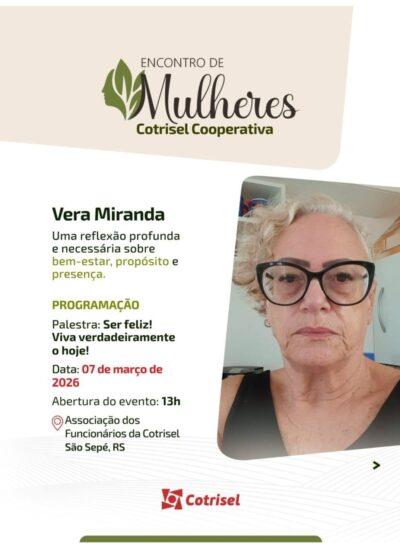 A força feminina que move o cooperativismo estará reunida em mais uma edição especial do Encontro de Mulheres da Cotrisel. ...Grêmio goleia o Inter e fica mais perto do título