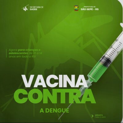 A Secretaria de Saúde informa que a imunização contra a dengue para crianças e adolescentes de 10 a 14 anos ...
