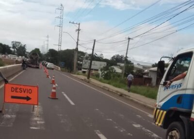 Equipes trabalham na concretagem dos muros atirantados da trincheira que conecta a BR-158/RS e BR-392/RS, no viaduto do bairro Uglione. ...Prefeitura informa alteração de atendimento no Centro Odontológico