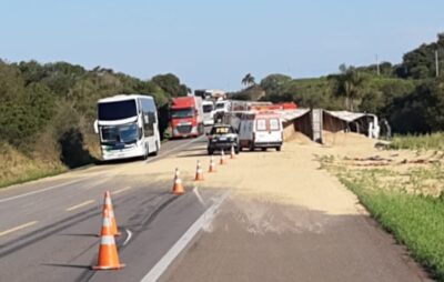 Um caminhão carregado de soja tombou por volta das 15h30 desta sexta-feira, 4, na BR 392, localidade de São Rafael, ...Divulgado o edital de homologação das concessões de auxílio transporte de estudantes