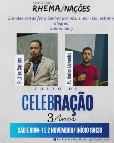 O Ministério Rhema para as Nações convida a comunidade sepeense para participar do Culto de Celebração pelos três anos do ...Após 35 anos CBF corrige erro e entrega taça ao Grêmio pela título da Supercopa ...