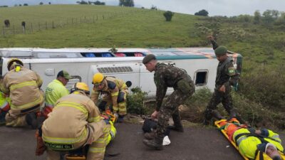 Um ônibus saiu da pista e tombou no km 214 da RSC-287, na localidade de Santuário, interior de Restinga Sêca, ...PRF atende acidente envolvendo motocicletas em Santa Maria