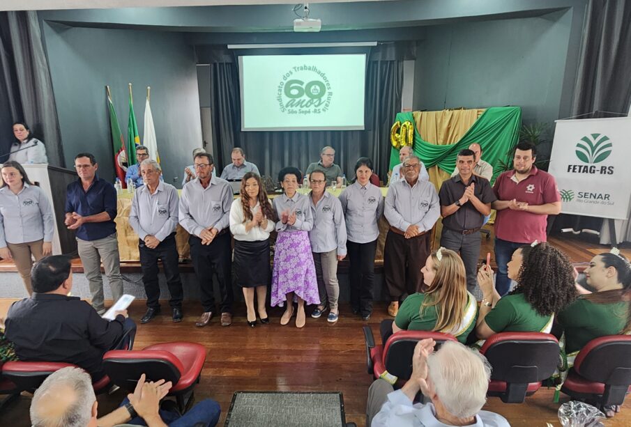 Cerimônia no Centro Cultural, marca homenagens aos 60 anos do Sindicato dos Trabalhadores Rurais de São Sepé. Confira reportagem JGTV.