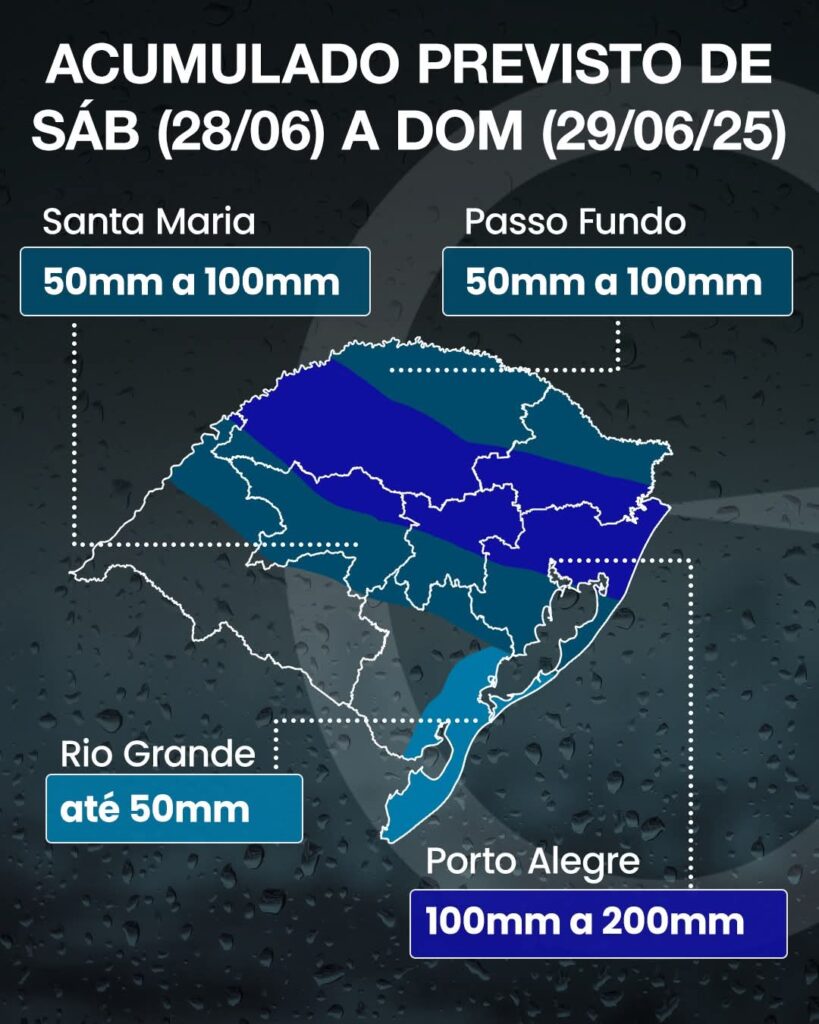 Mais um episódio de chuva forte no estado do Rio Grande do Sul neste final de semana. O processo de formação de uma nova frente fria no decorrer deste sábado (28), aumenta a condição de tempo instável.
