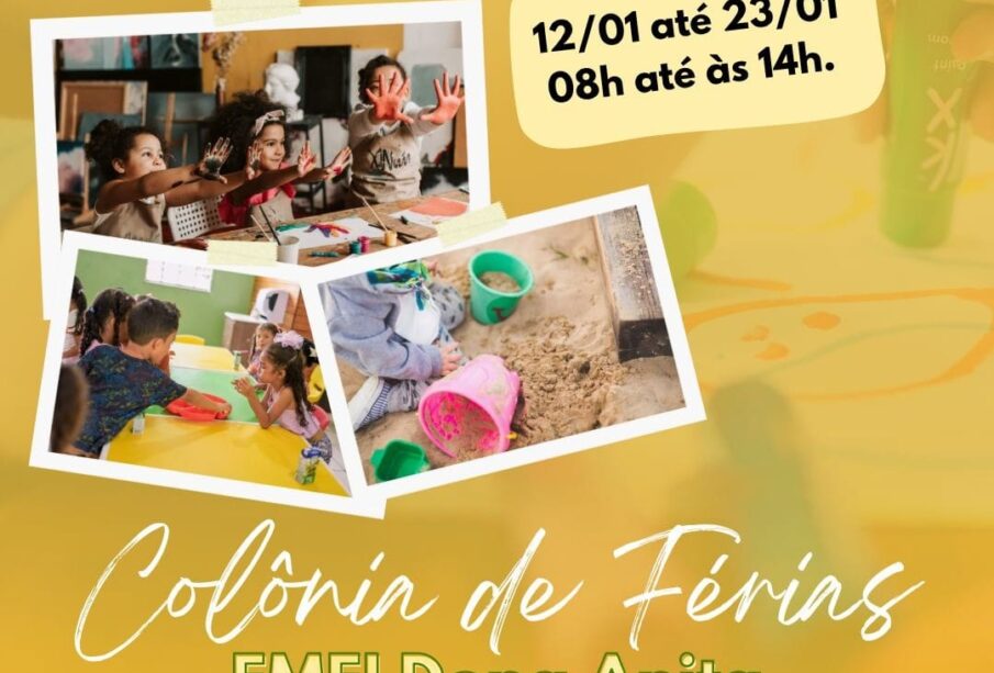 A Secretaria Municipal da Educação dará início, no dia 12 de janeiro, à Colônia de Férias na EMEI Dona Anita, destinada às crianças que realizaram a matrícula no mês de dezembro.