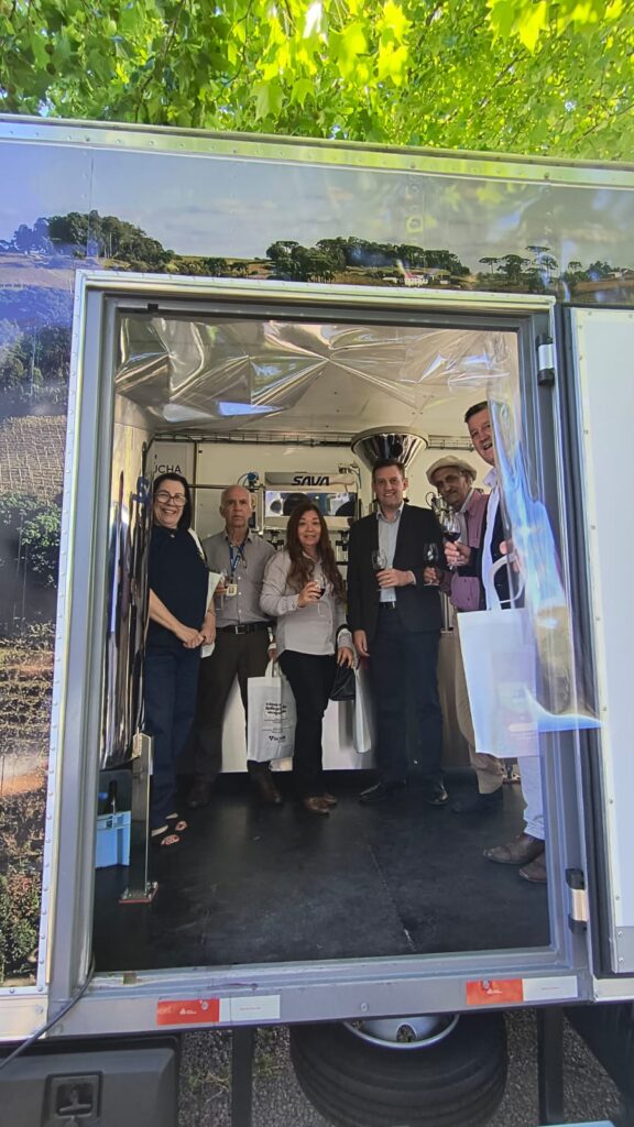 A comitiva acompanhou a entrega oficial do equipamento, que atenderá produtores de todo o Estado. Também foi tratado o interesse em trazer a Unidade Móvel para integrar a programação da Festa da Uva Regional 2026, proposta que recebeu sinalização positiva da Associação.