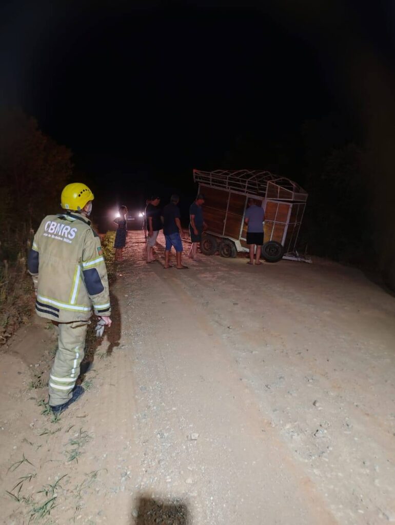 O Corpo de Bombeiros Militar do Rio Grande do Sul (CBMRS), por meio do 2º Grupamento de Bombeiros Militar (2º GBM) de São Sepé, atendeu, na noite desta segunda-feira, 9 de fevereiro, a uma ocorrência de busca, salvamento e resgate após o capotamento de um reboque que transportava um animal (cavalo).