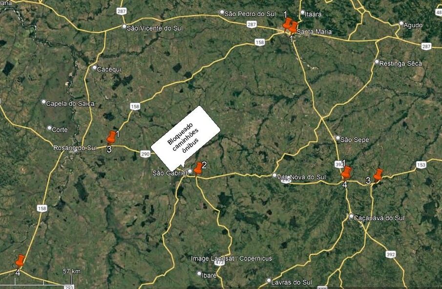 Rotas alternativas – Durante o período de bloqueio, o DNIT recomenda a utilização das rodovias BR-392/RS e BR-158/RS, com passagem pelo município de Santa Maria.