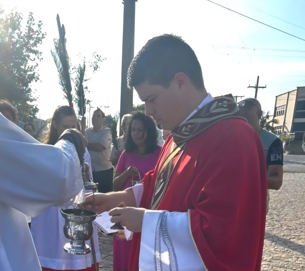 A celebração ficou por conta do padre Bruno Gross da Silva e reuniu os fiéis da Paróquia São Vicente de Paulo.