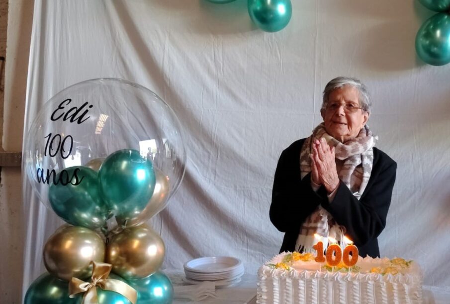 O ponto alto da festa? A cena emocionante de Edi batendo palmas e cantando os parabéns para si mesma, antes de soprar a velinha do bolo. Um gesto simples, mas que traduz tudo: ela chegou aos 100 anos com vitalidade, lucidez e fé. “Ela está melhor do que nós, exceto pela coluna e a audição”, brinca, entre risos, a prima-irmã Núbia.