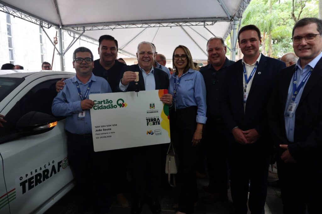 Foram concedidas também, as primeiras unidades do Cartão Cidadão a agricultores familiares selecionados no programa. O cartão representa um auxílio financeiro de até R$ 30 mil para a execução de medidas de recuperação e resiliência nas propriedades, conforme plano de ação elaborado pela Assistência Técnica e Extensão Rural e Social (Aters).