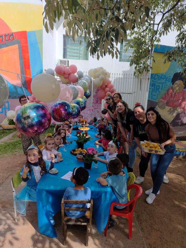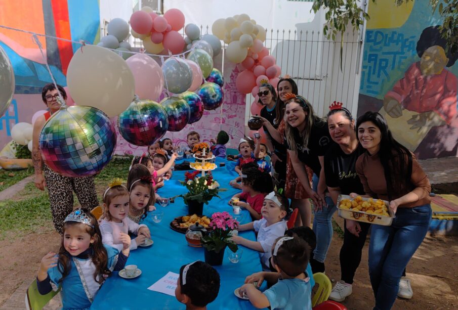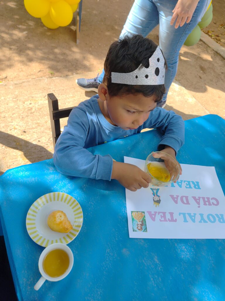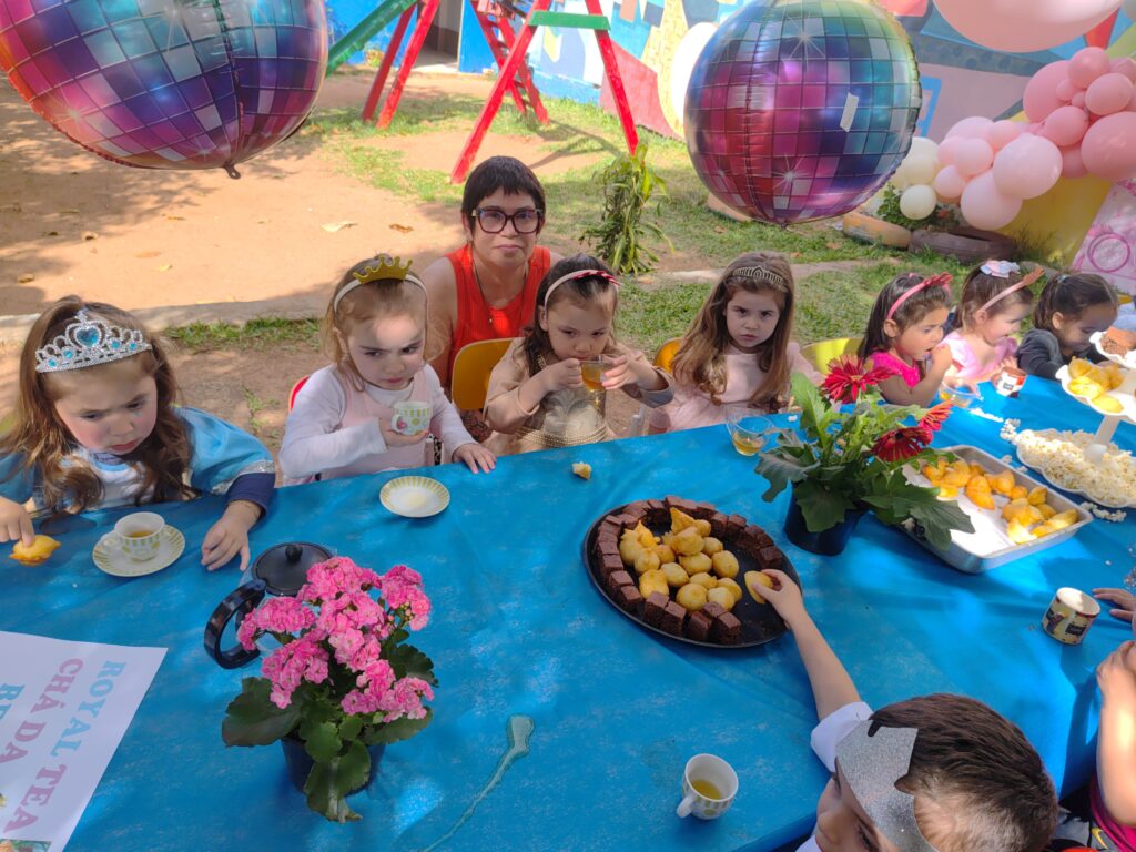 Conforme a diretora Rozangela Figueira, neste ano a escola decidiu inovar na comemoração, realizando uma proposta diferente: o “Royal Tea – Chá da Realeza”, organizado pela professora Vanessa Seixas Lemos com as turmas do Maternal A1 e A2.