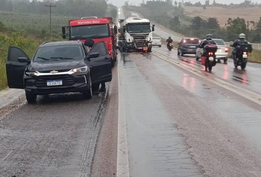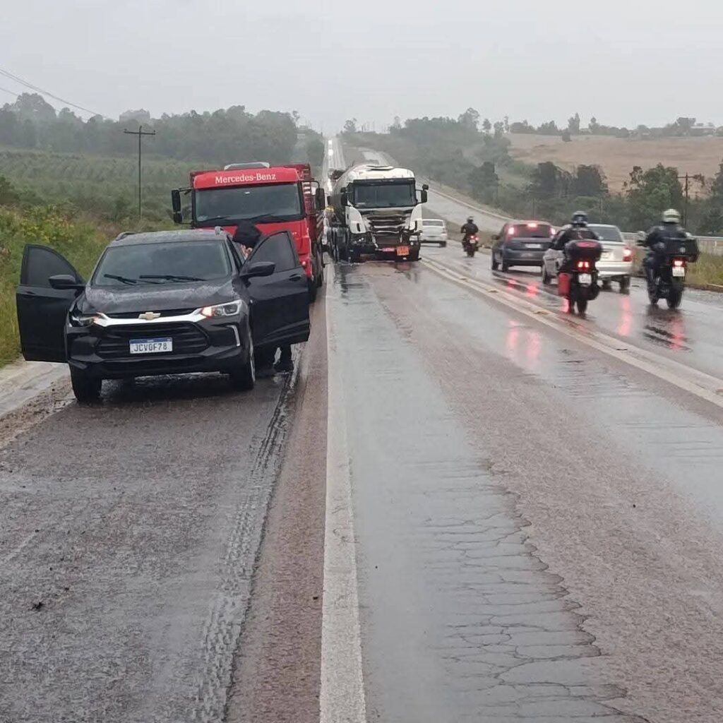 De acordo com as informações iniciais, o acidente envolveu quatro caminhões — sendo dois deles tanques — e um automóvel. As circunstâncias que levaram ao sinistro ainda não foram esclarecidas.