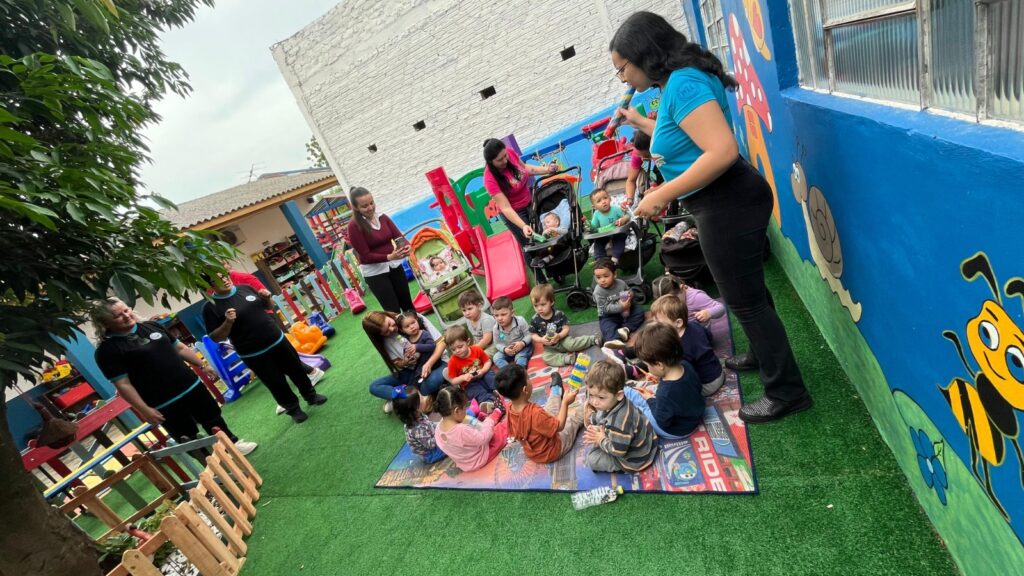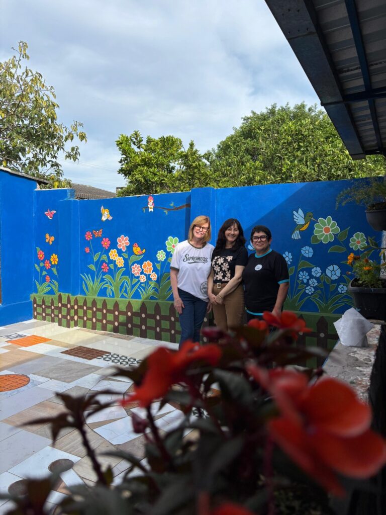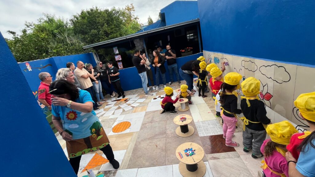 O primeiro é o Projeto Muro Encantado, contemplado no V Edital de Projetos da Fundação Antônio Meneghetti. Por meio dessa iniciativa, um local antes ocioso foi transformado em um ambiente colorido, acolhedor e cheio de vida, ideal para atividades como contação de histórias, pintura livre e outras experiências criativas que estimulam a imaginação dos alunos.