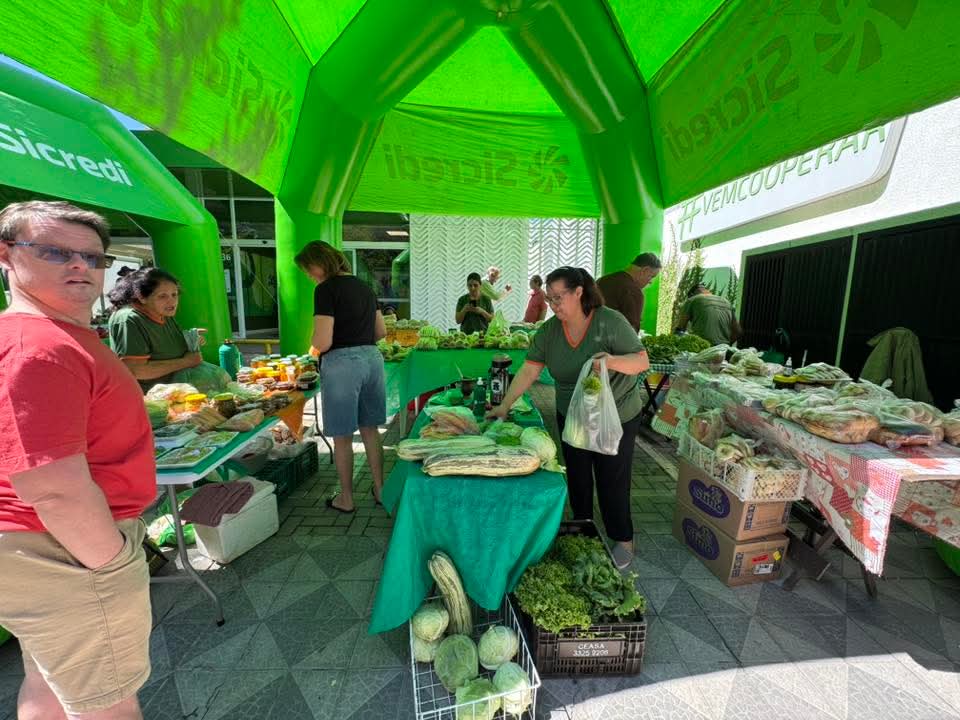 Nesta segunda-feira, 10 de novembro, está acontecendo uma Feira da Agricultura Familiar, com comercialização de hortigranjeiros, produtos coloniais e artesanato. O Sicredi apoia todos os seguimentos da comunidade, destacou o gerente Guto Rezende.