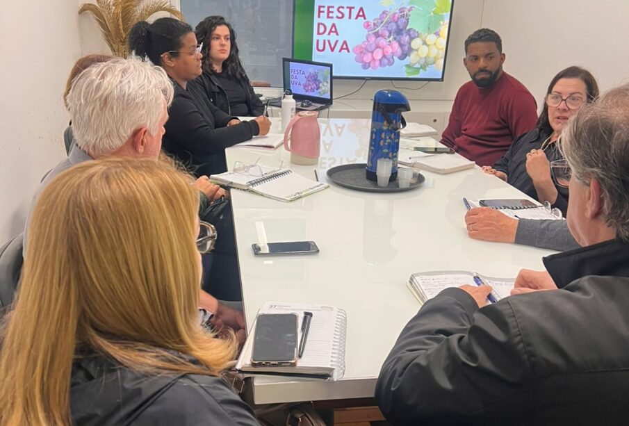 Na manhã desta terça-feira, dia 30, a sala de reuniões da Biblioteca Clara Gazen foi o espaço escolhido para a apresentação do projeto da Festa Regional da Uva 2026, em um encontro que reuniu representantes de diferentes entidades e do Executivo Municipal.