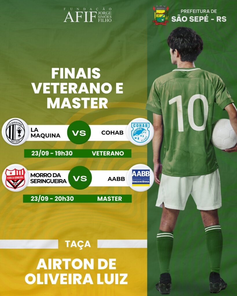 A Prefeitura Municipal e a Fundação Afif, através da Diretoria de Esportes, promovem na terça-feira, 23 de setembro, véspera de feriado, as grandes finais do campeonato de Futebol Veterano e Master.