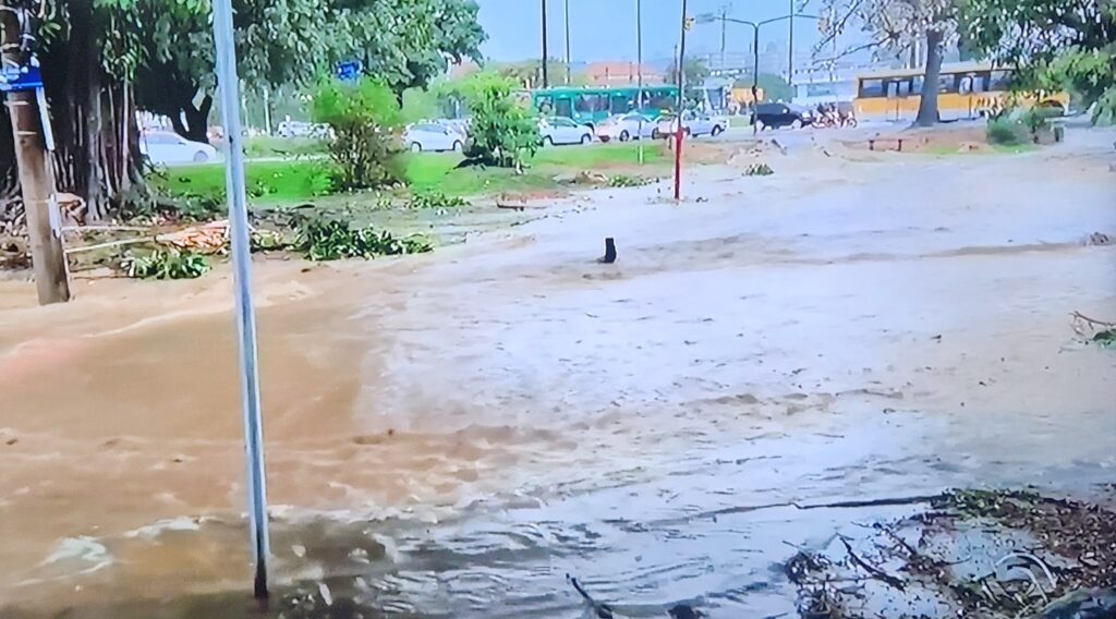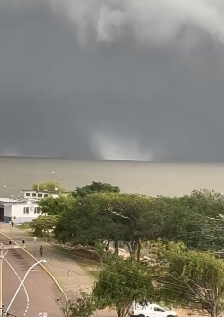 Um vídeo circulando nas redes sociais mostra caminhão tombando na ponte nova do Guaíba. No outro, uma tromba de água se formando sobre o Guaíba.